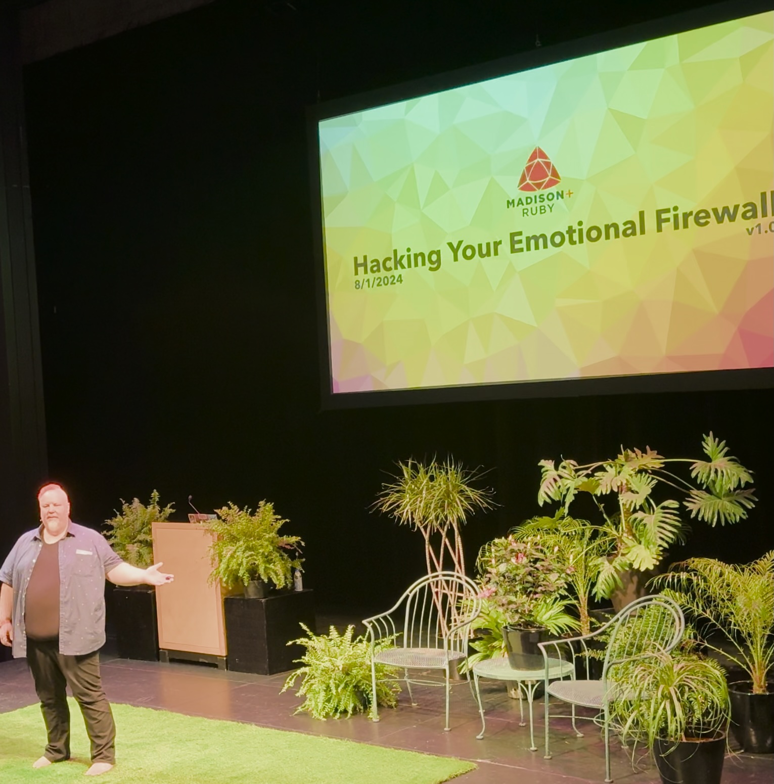 Presented all over the US and in multiple countries, Hacking your Emotional API presents my core metaphor. Using the ideas of an API, that it's public, that code runs when it receives a request, and that we control that code, I map out the ways the we as humans experience emotions. With that foundation I present my toolkit of ideas and practical techniques that everyone can use to understand the emotions their API responds with, and how to refactor those responses for a better life, better work, and better relationships.